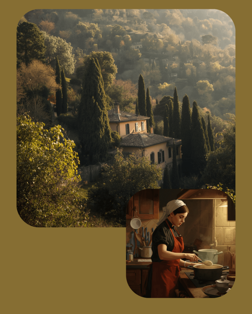 Ze verwent ons met de smaken van de streek. Echt Italiaans eten, geserveerd op een klein binnenplein, omringd door oude muren die verhalen lijken te fluisteren.